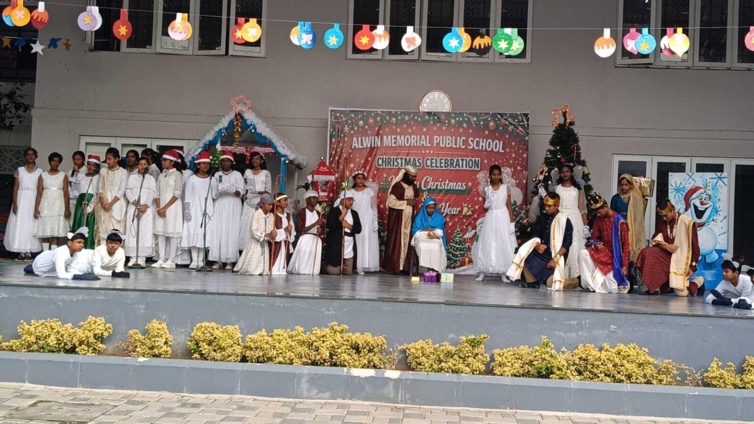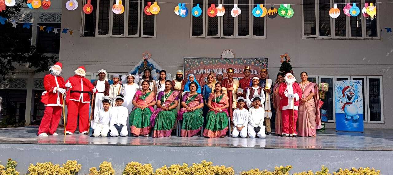 The school was filled with cheers on the celebration of Christmas. The celebration took place on 22nd December in Alwin Campus. Students from class I to VIII participated in various cultural programmes which enriched the celebration. Participants dressed themselves in red and white. Carols and dance were performed by the students in a most joyful way. The Nativity play stole the show. Santa Claus masks, handicrafted gifts, attractive crib enriched the season of Christmas. The whole school was decorated with cards, stars and bells with vibrant colours. The music band visited the classrooms and entertained the students with wonderful carols.